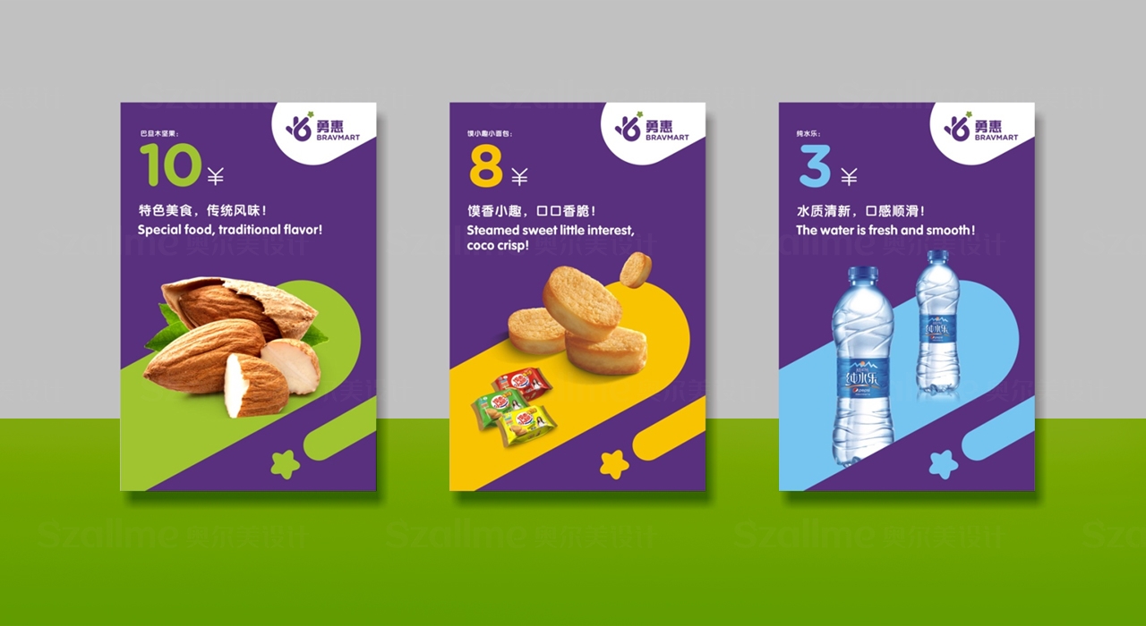 勇惠是一個以零售為主打的便利店品牌, 然而其原有的形象缺乏個性,終端形象較為落后,店面吸引力不足,因此難以突顯競爭力、與同行形成差異。奧爾美在勇惠品牌的改造過程中,標志是塑造勇惠便利店形象、創造品牌無形資產的核心元素,借鑒其名英文名稱一"Bravmart"中的首字母“B” 創作元素,同時融入OK的手勢,代表我們的美好生活態度,品質好、口碑好、讓生活更美好,五角星的元素體現我們星級服務,全星體驗,傳遞快樂。